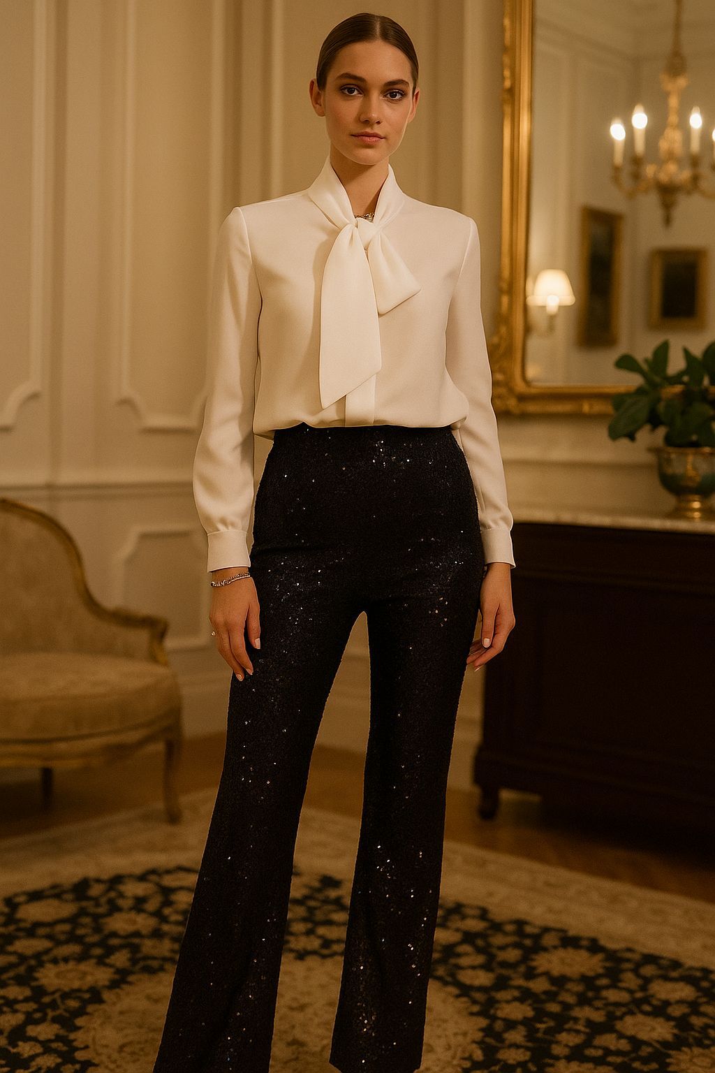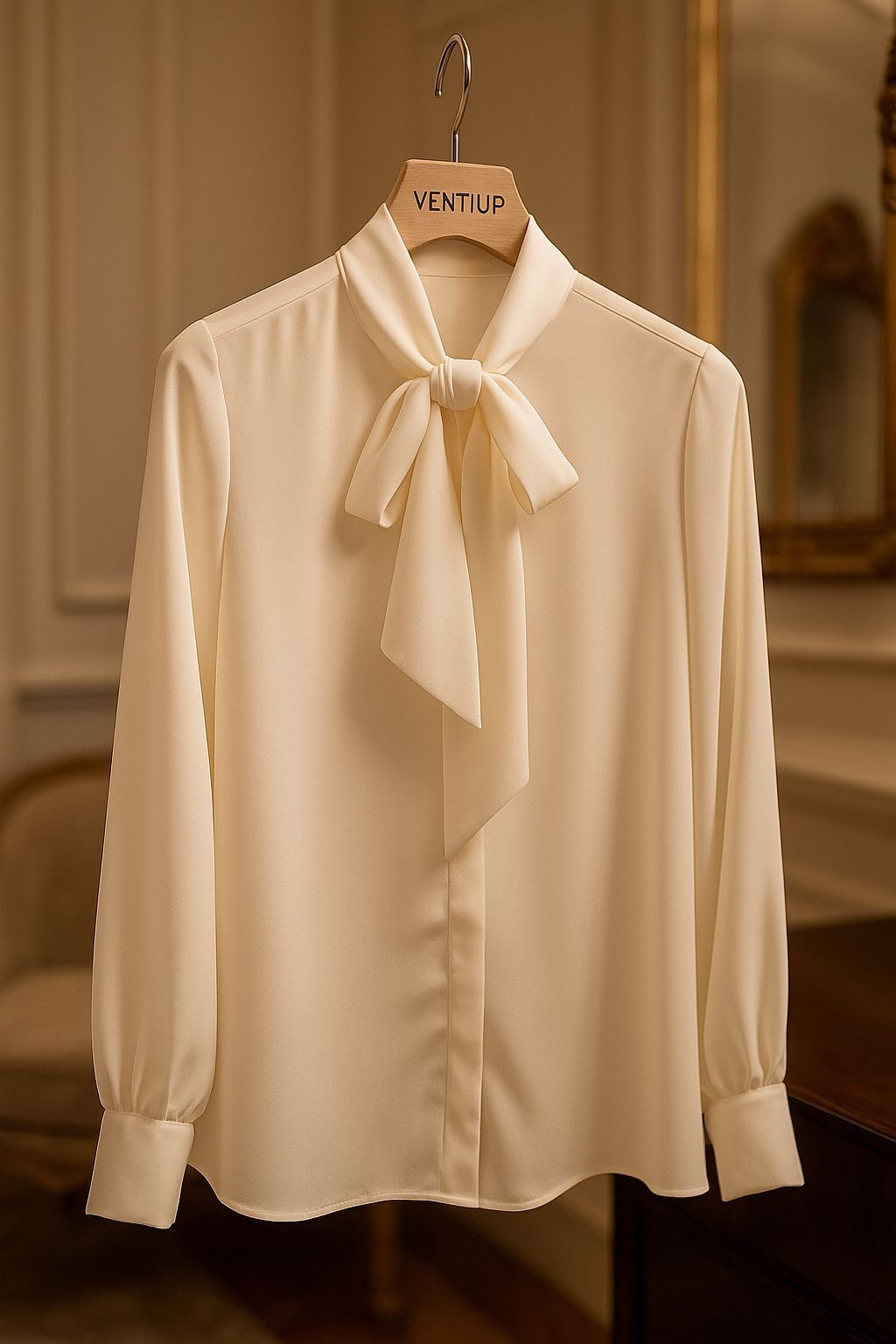 Zamansız bir zarafetle tasarlanan Ventiup fiyonk yaka saten bluz, feminen ve sofistike çizgisiyle her stile uyum sağlar.