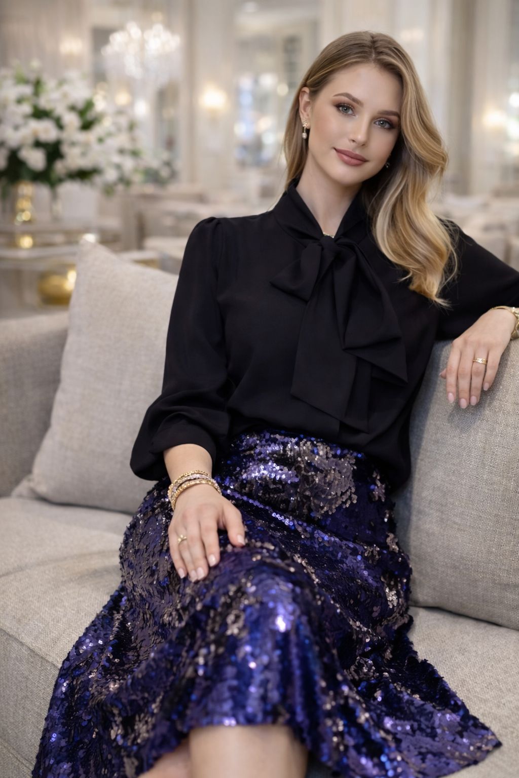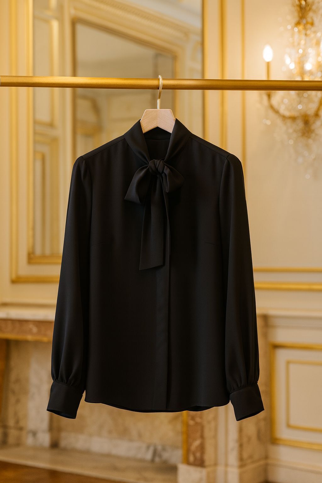Zamansız bir zarafetle tasarlanan Ventiup fiyonk yaka ipek krep bluz, siyahın asaletiyle her stile güçlü ve sofistike bir dokunuş katar.