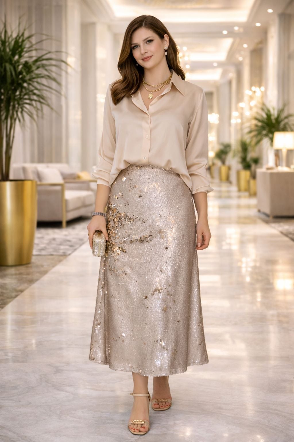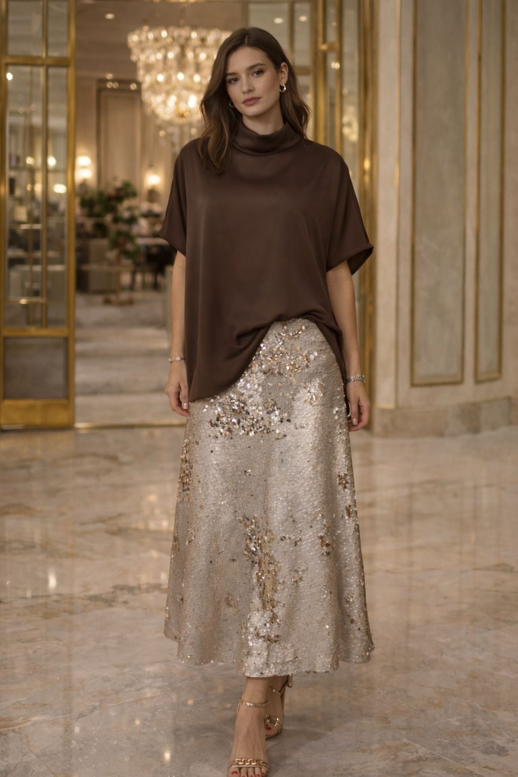 VENTİUP GOLD BEJ ÇİFT TARAFLI PAYET ETEK ⭐️