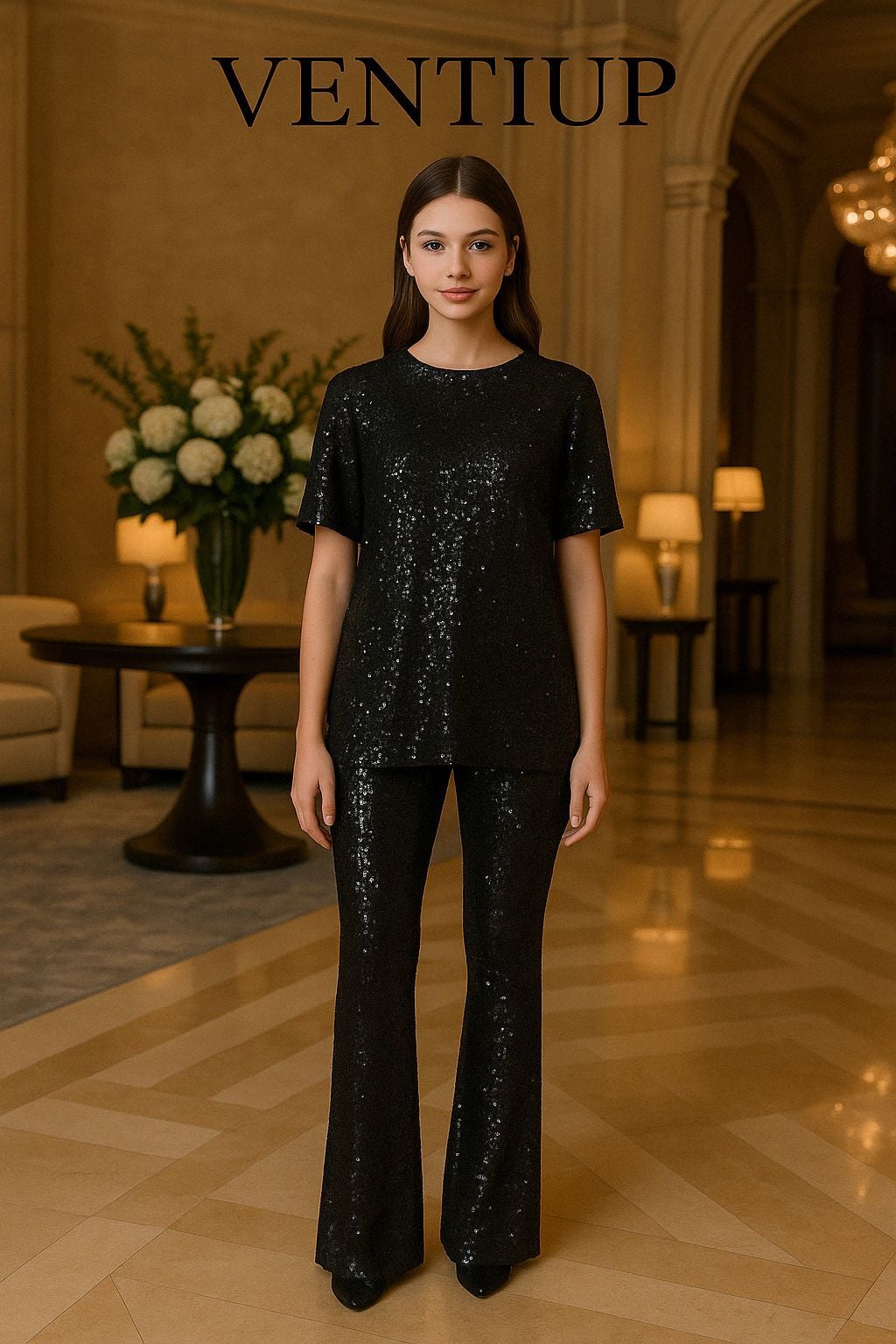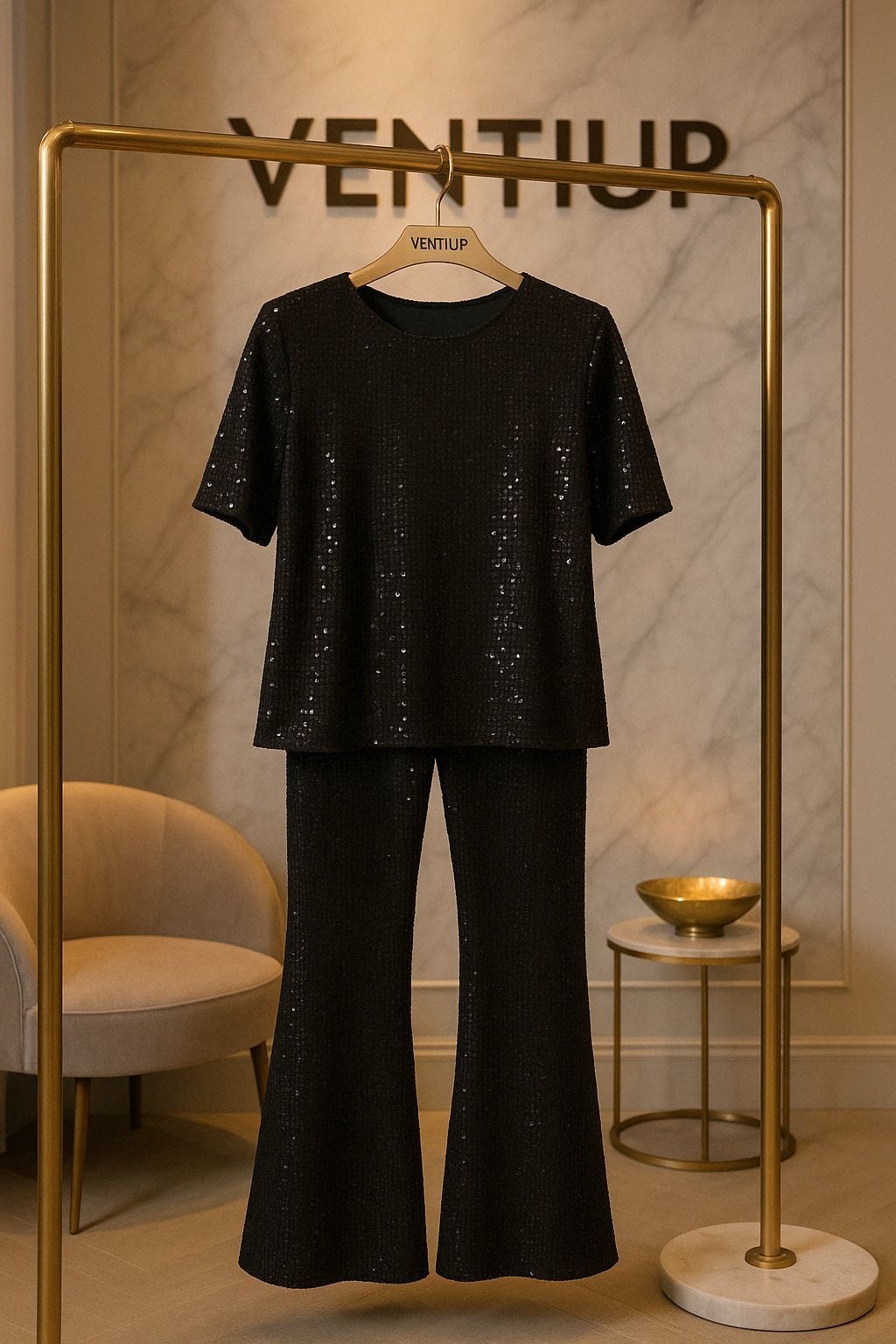 Stella Siyah Payet Takım – Bluz & Pantolon Set