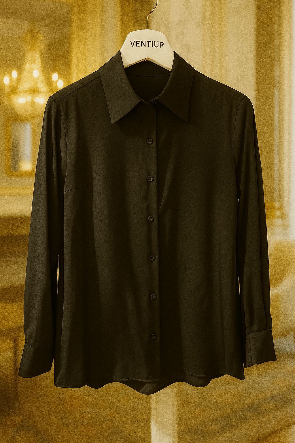 Zamansız şıklığın sembolü olan Ventiup Luxe Siyah İpek Saten Gömlek, ipeksi dokusu ve akışkan formuyla sofistike bir görünüm sunar.