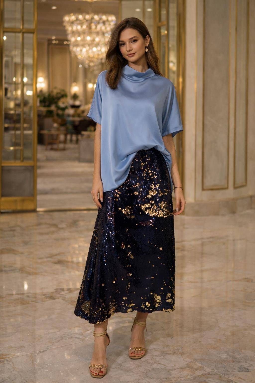 Yumuşak saten kumaşı ve dökümlü formu sayesinde hem konforlu hem de şık bir duruş sunar.
