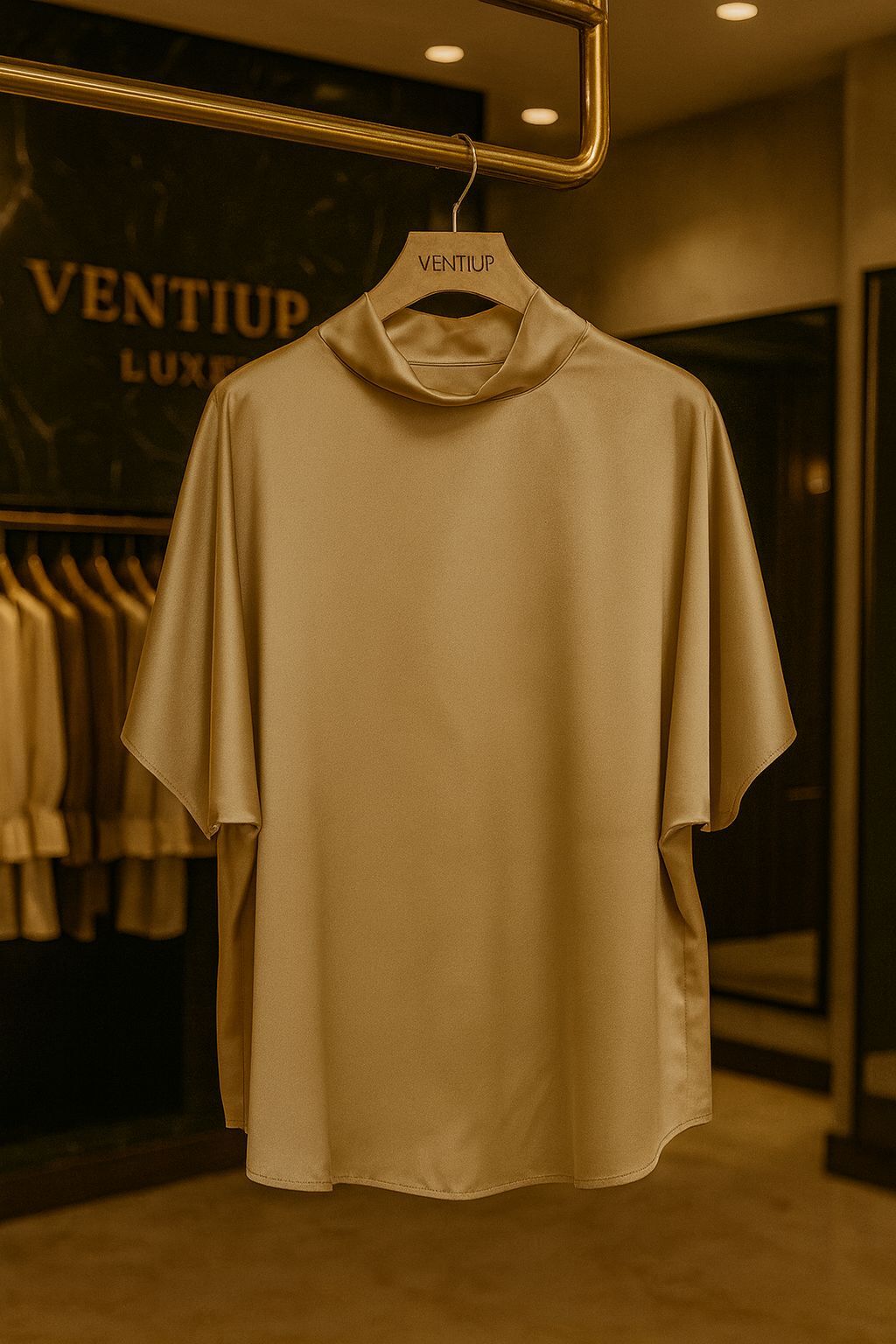 Champagne Luxe Satin High Neck Bluz – Ventiup Luxe Koleksiyonu