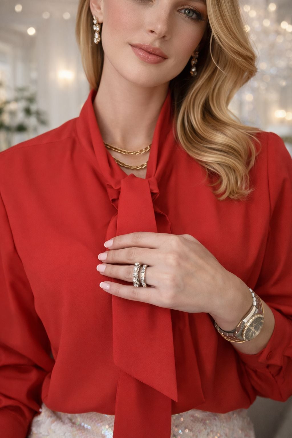 Fiyonk Yaka Uzun Kol İpek Krep Bluz – Kırmızı