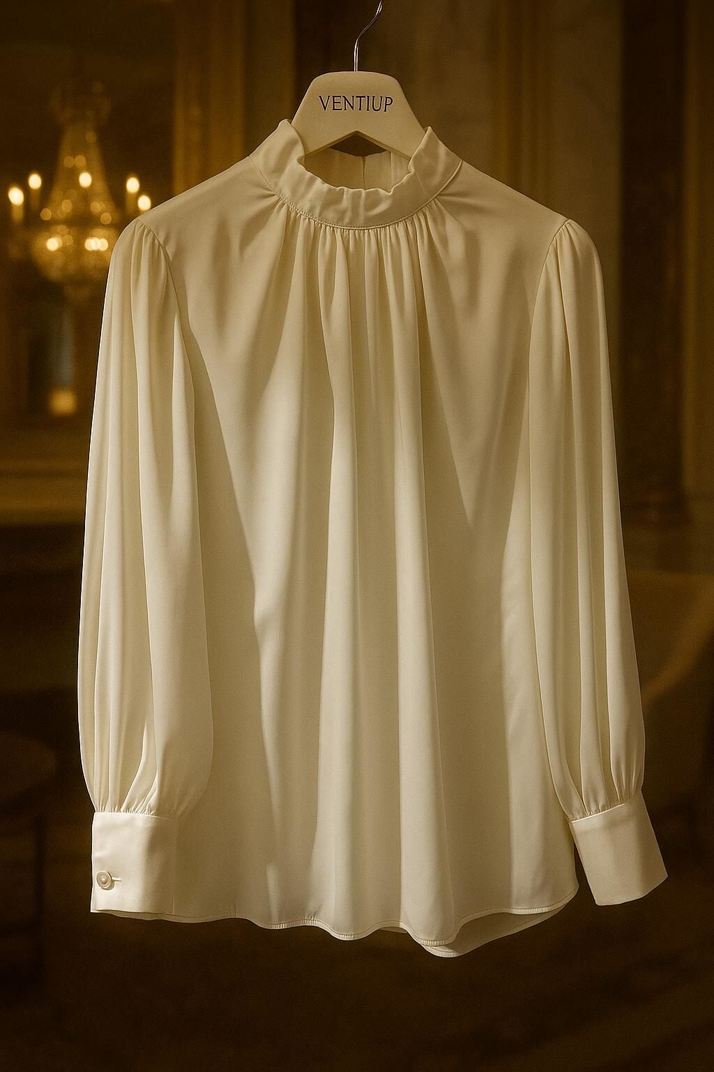 Ventiup Luxe Dökümlü Balon Kol İpek Saten Bluz – Ekru