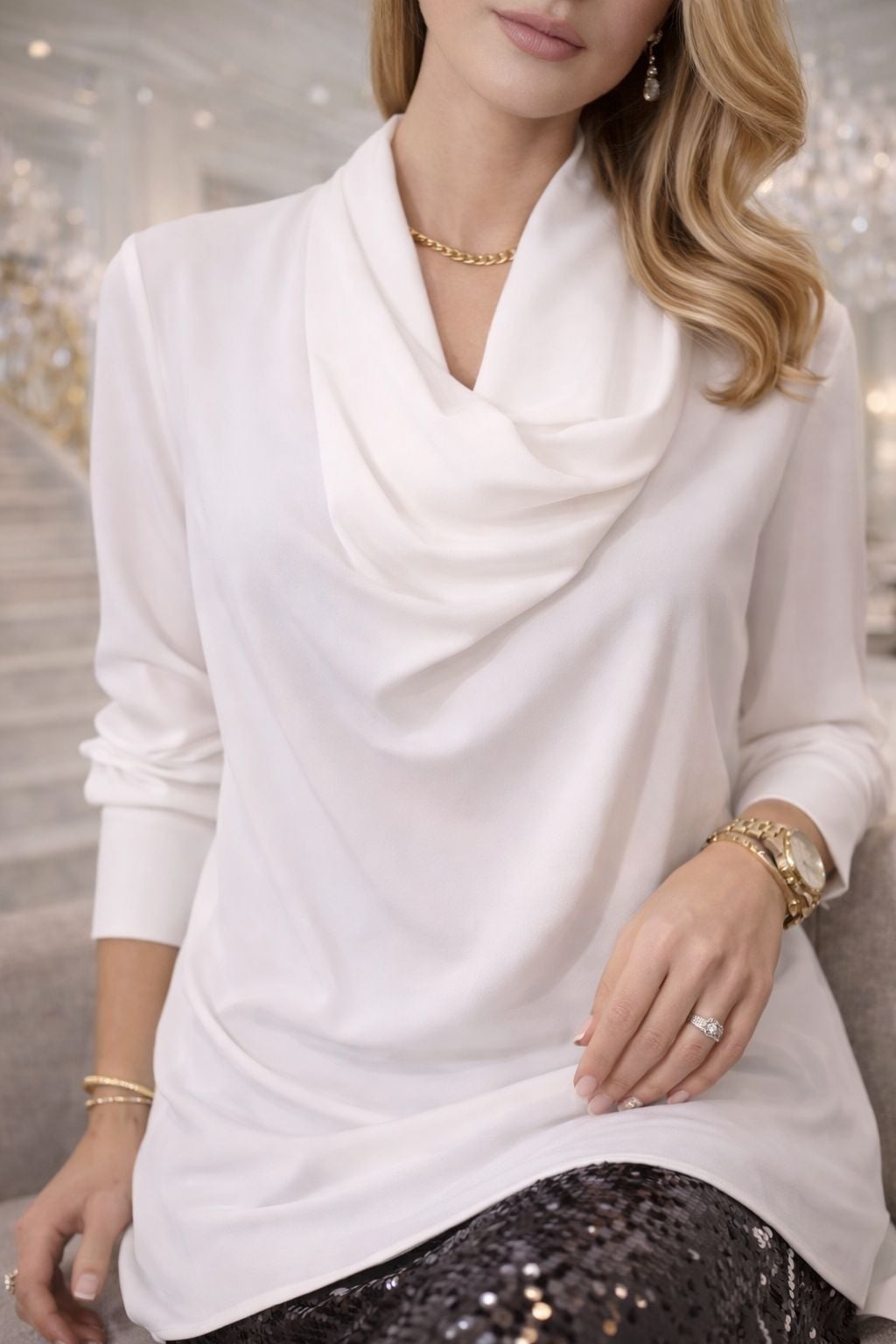 Ventiup Luxe İpeksi Dökümlü Yaka Bluz – Ekru