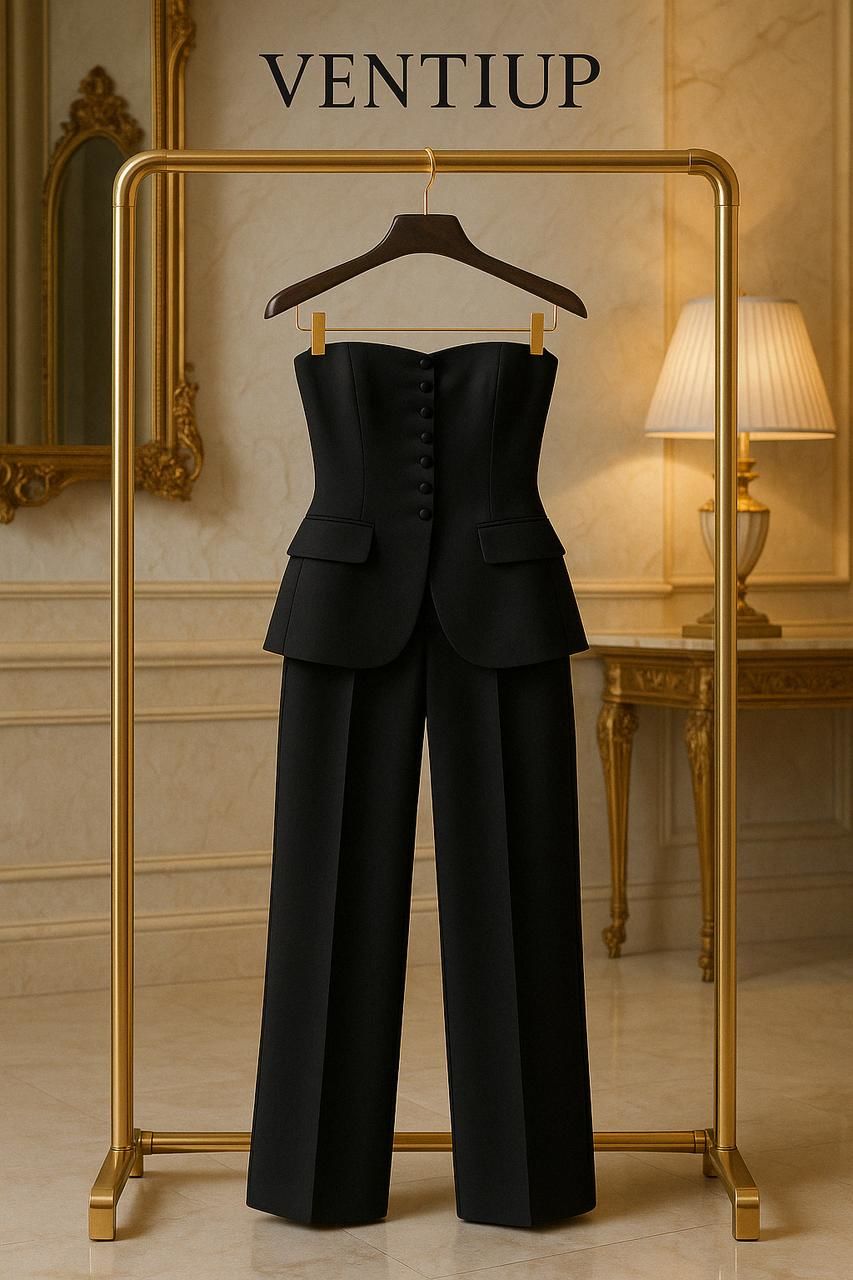 Güçlü bir siluet, modern zarafetle buluşuyor. Amara Takım, straplez Büstiyer tasarımı ve düğme detaylarıyla klasik stili çağdaş bir yorumla sunuyor. Minimal ama etkileyici duruşuyla kokteyllerden özel kutlamalara kadar her ortamda göz kamaştırır. Ventiup kadınının gücünü ve zarafetini temsil eder.