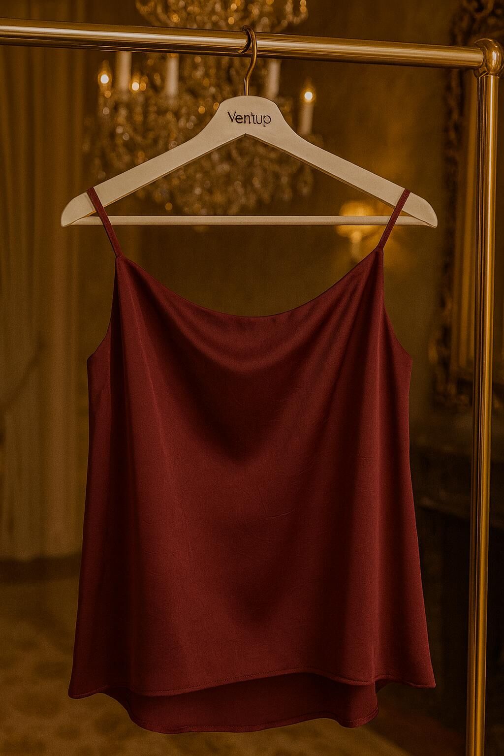 Zamansız sade şıklığın sembolü olan Ventiup ipek saten bordo bluz, lüks parlak dokusuyla her stile zarif bir dokunuş katar.