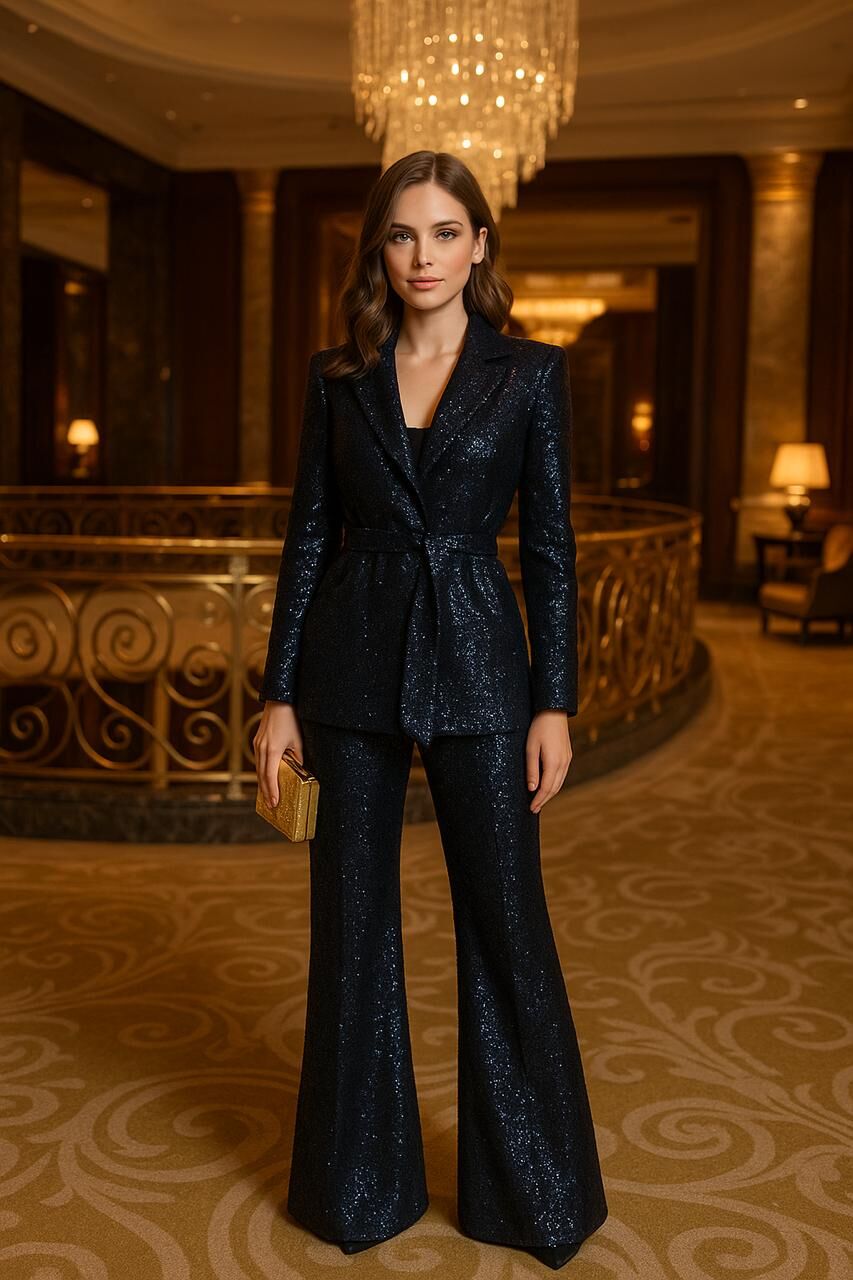 Lacivert Payet Ceket ve İspanyol Paça Pantolon Takım