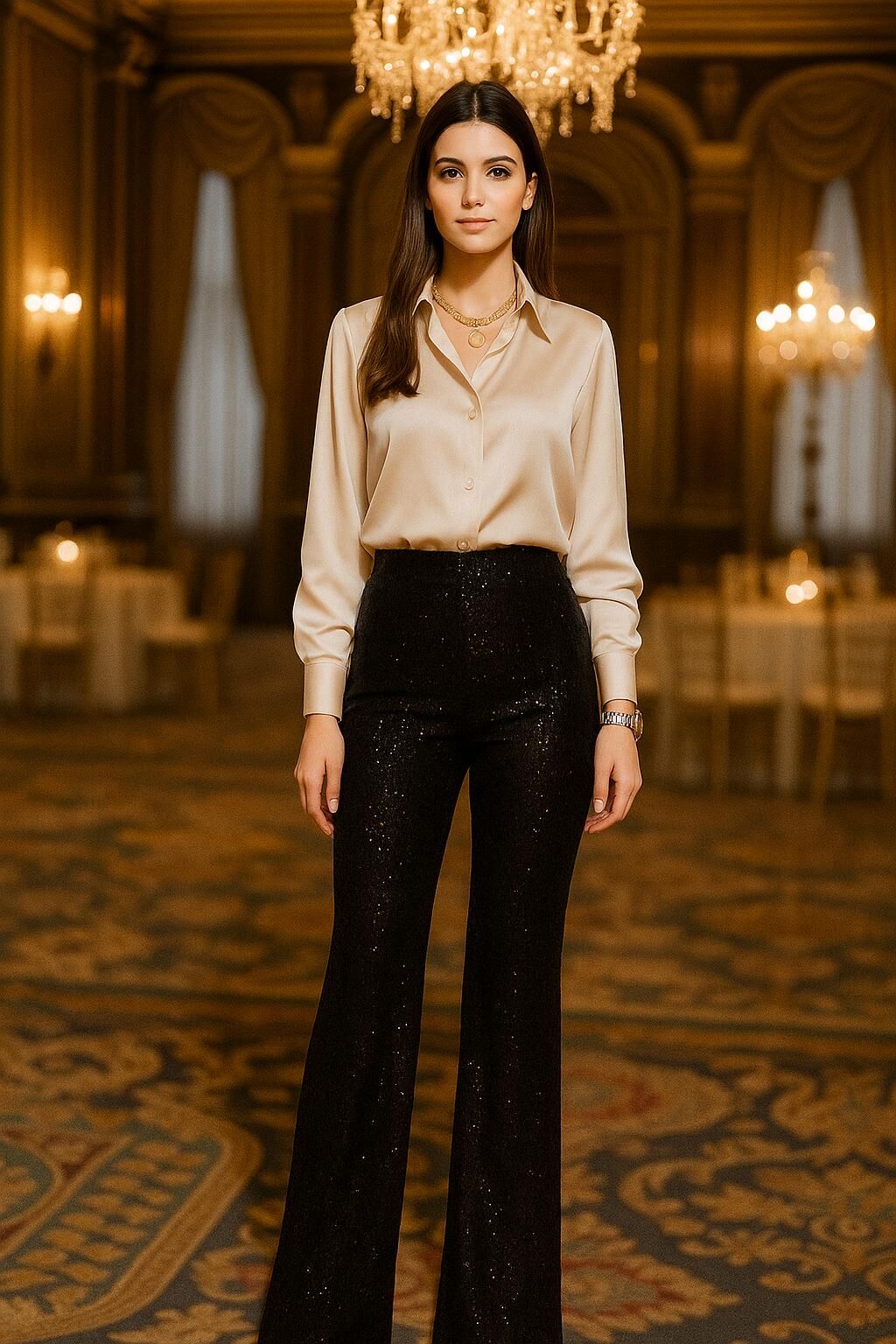 SİYAH PAYET İSPANYOL PAÇA PANTOLON