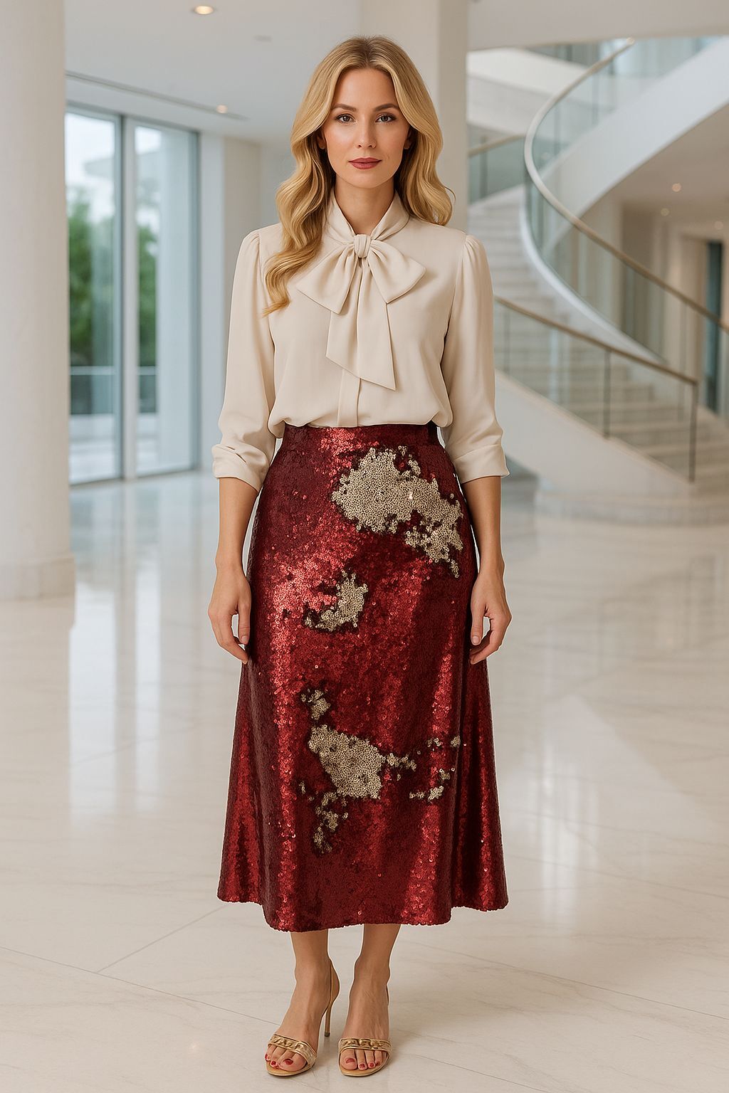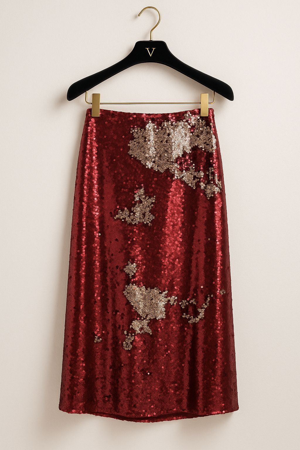 VENTİUP BORDO BEJ ÇİFT TARAFLI PAYET ETEK ⭐️