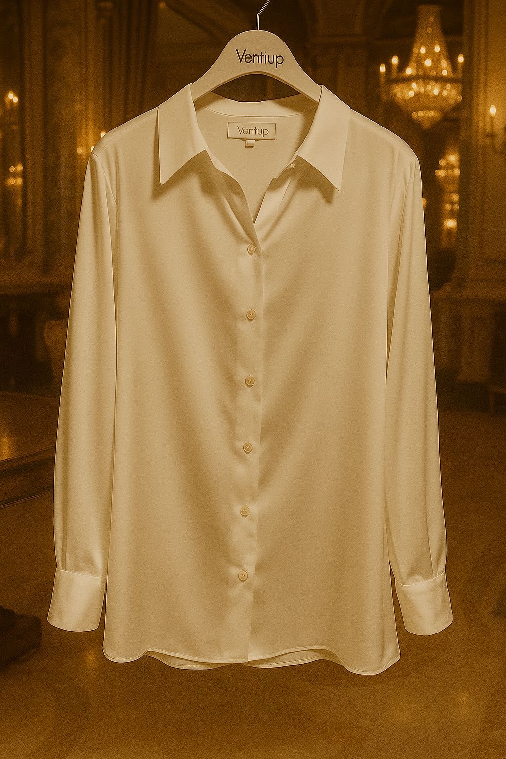 Ventiup Luxe Beyaz İpek Saten Düz Gömlek
