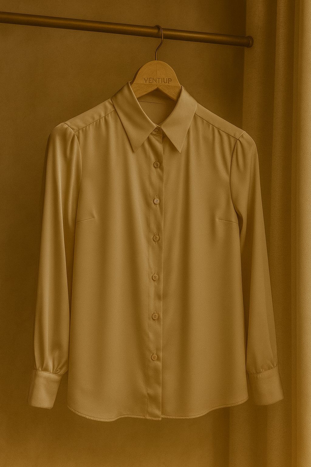 Ventiup Luxe Şampanya İpek Saten Düz Gömlek